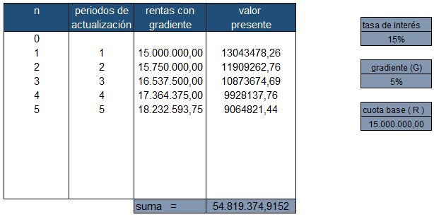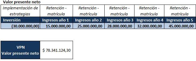 presente del flujo de caja considerando el costo de oportunidad (fijado en el