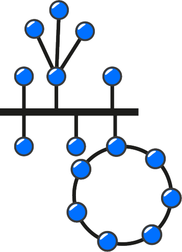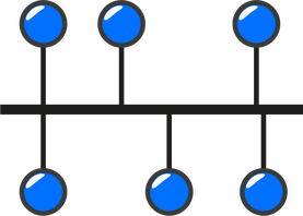 Bus: Un cable largo actúa como una red troncal que conecta todos los nodos de la red