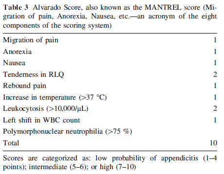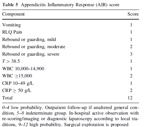 poca espacificidad y sensibilidad para apendicitis aguda