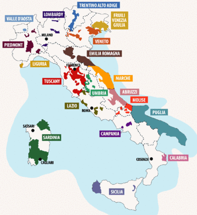 del vino". Existen más de 200 zonas viticolas oficiales.