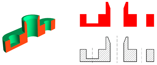 SECCIÓN es la intersección del plano de corte con la pieza