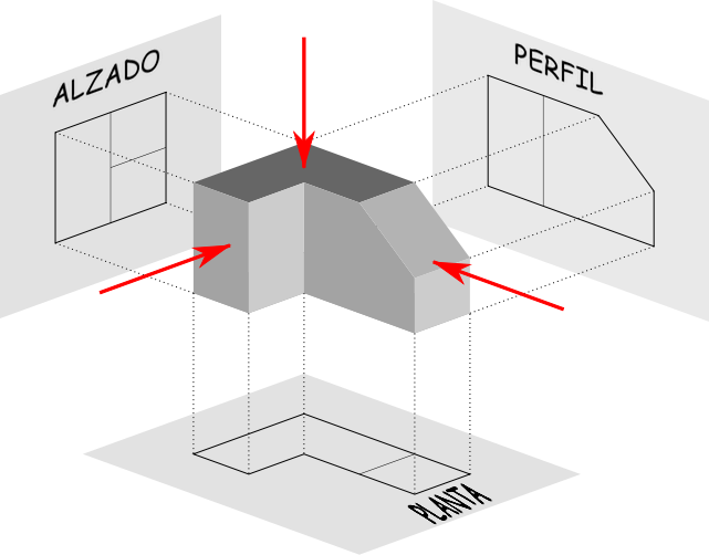 Vista superior o planta, Vista de frente o alzado, Vista