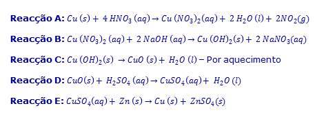 o Cu, passando de 0 para +2) e outro que se reduz (o N, passando de +5 para +4), Reação E:
