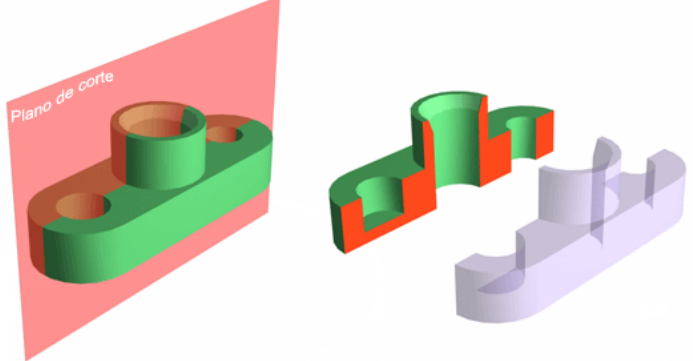 respecto a los planos de proyección, se podrá realizar un corte auxiliar oblicuo, que se proyectará paralelo al plano de corte y
