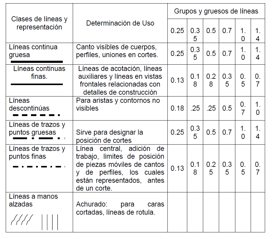 Son las líneas que cumplen con un calibre, trazo y una función específica