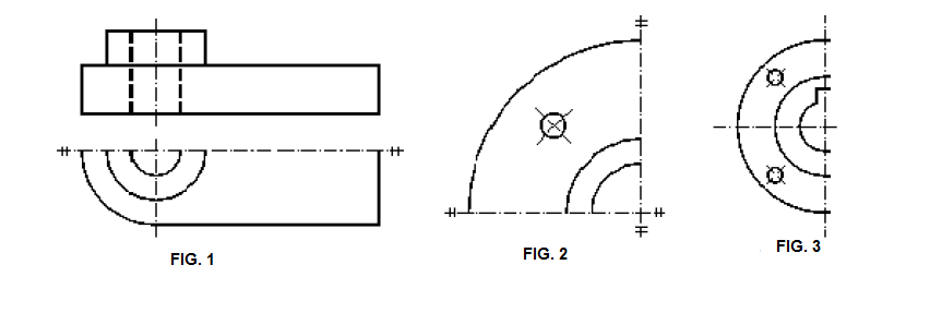 representarse dicha pieza mediante una fracción de su vista fig. 1 y 2. La traza del plano de