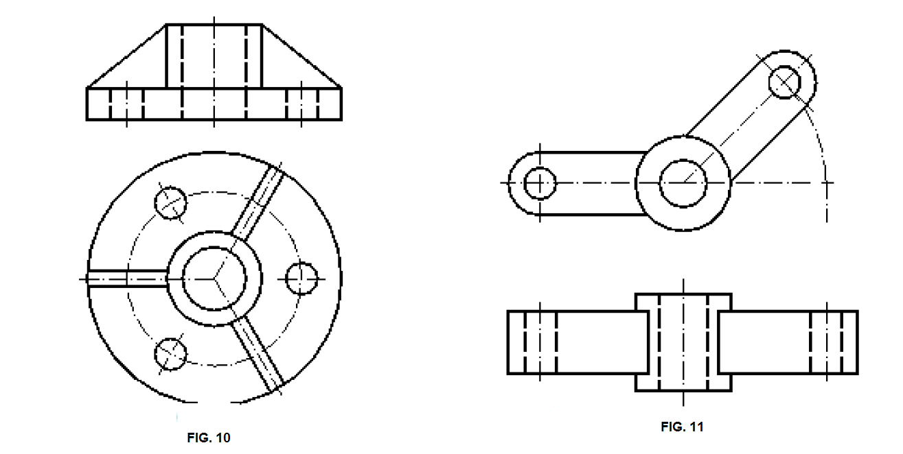 con línea gruesa, y unidas a la vista principal por una línea fina de trazo y punto Fig 8 y 9