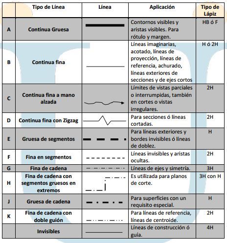 Se identifican tipos de lineas,