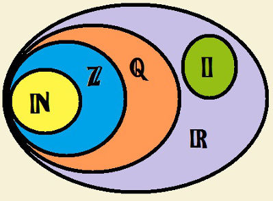números naturais, inteiros, racionais, irracionais e reais
