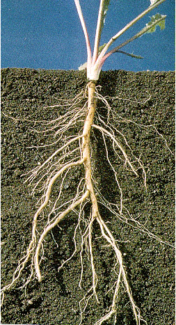 El agua y las sustancias entran por la raíz(llamado savia bruta) y llegan a las hojas que donde se hace la fotosíntesis.