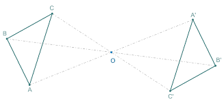 1. La simetría respecto de un punto se llama simetría central y los puntos correspondientes, homólogos. En una simetría central, los segmentos homólogos son iguales y la medida de los ángulos correspondientes también son iguales.