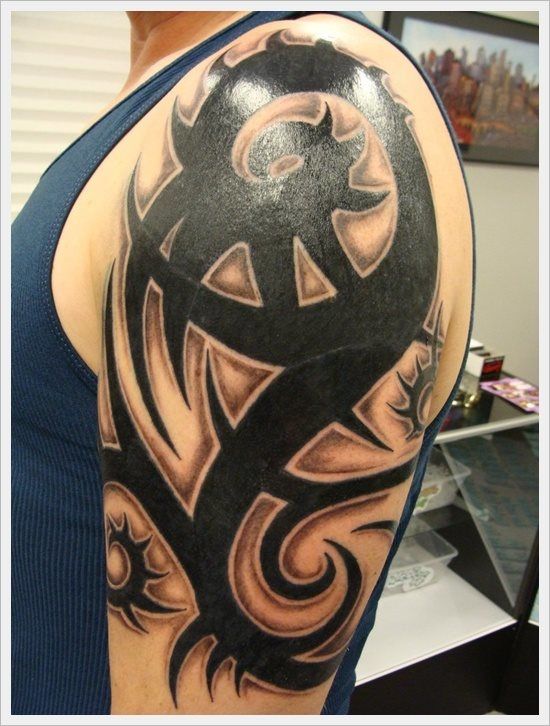 tatuajes de gran tamaño y suelen estar compuestos por símbolos o formas geométricas