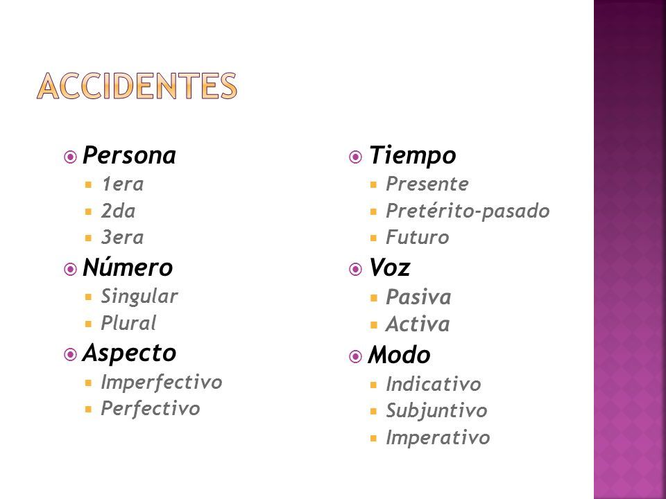 modo, voz, tiempo y aspecto.