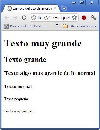del texto. El encabezamiento <h1> nos proporciona las letras de mayor tamaño.