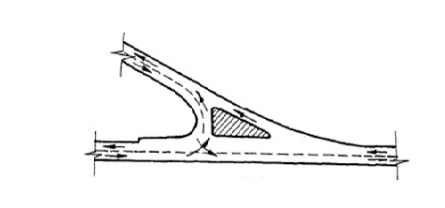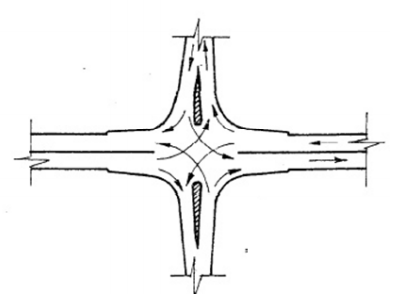 1. Si el tráfico es importante, además vías especiales separadas con isletas triangulares