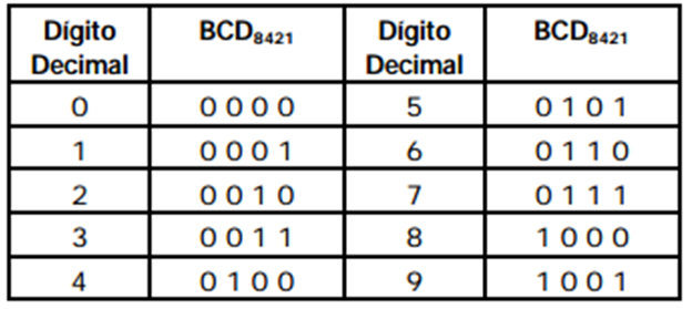 decimales (0,...,9) mediante 4 bits.