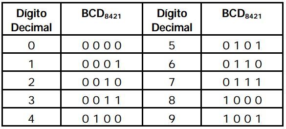cada código BCD de cada dígito decimal.