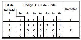 añadir un bit de paridad (p) a cada carácter,