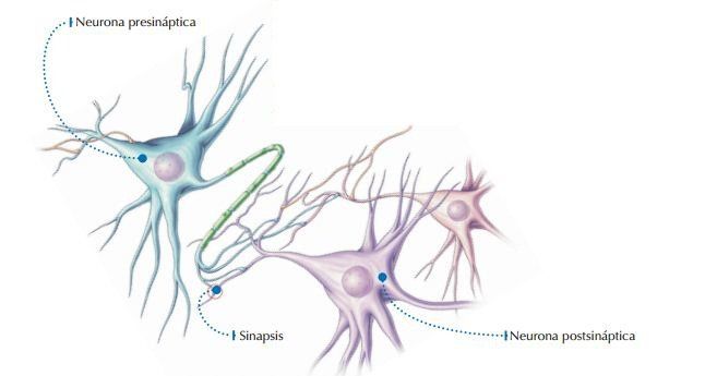 Como ya se ha dicho, la unión entre dos neuronas es la sinapsis. Pues bien, la neurona presináptica