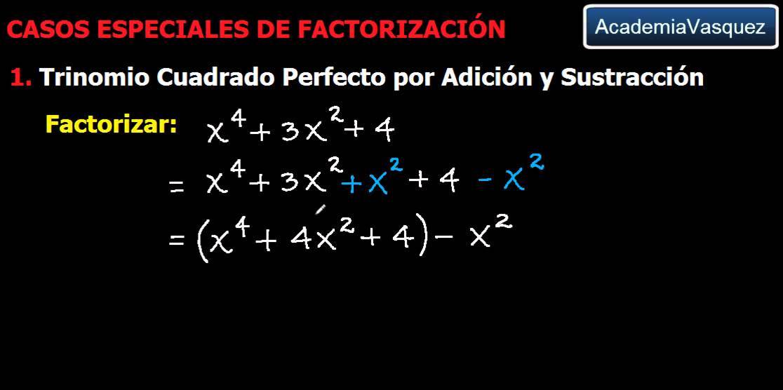 Trinomio cuadrado perfecto por adicion y sustraccion