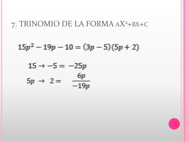 Factorizar una expresion algebraica es hallar dos o mas factores cuyo producto es igual a la expresion propuesta