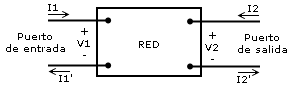 Red eléctrica de dos puertos, uno se identifica como puerto de entrada y uno como puerto de salida.
