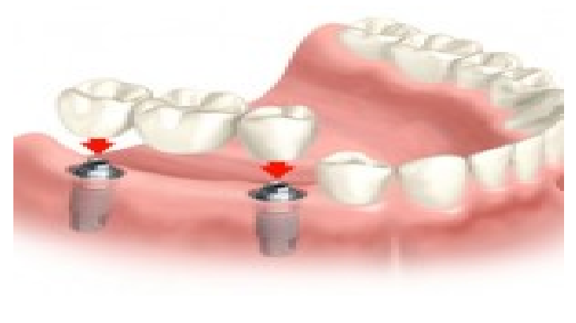Recolocação dos dentes perdidos sobre suportes metálicos localizados no alvéolo dental