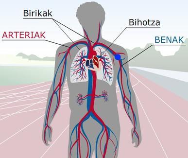 Bihotza, uzkurtzean eta zabaltzean, honela gorputzeko alde desberdinetara hel daiteken odola ponpatzen du.
