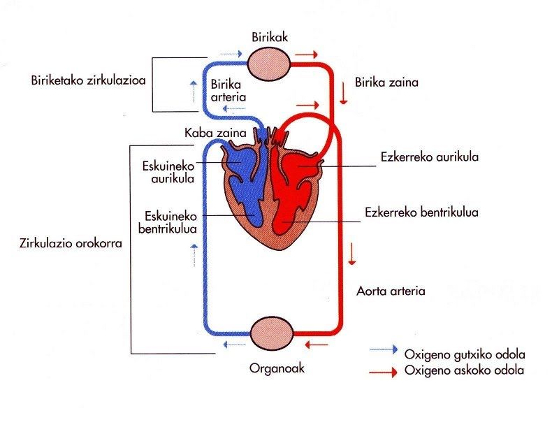 Mantenugaiak eta oxigenoa gorputzeko zelula guztietara banatzeaz arduratzen da. Gainera hondakinak eta karbono dioxido biltzen du, gero kanporatzeko.