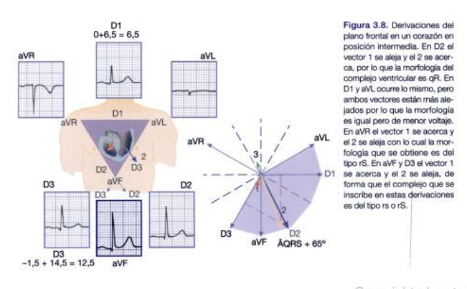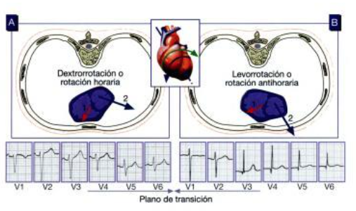 Morfología del complejo de despolarización ventricular se altera dependiendo de la posición del corazón