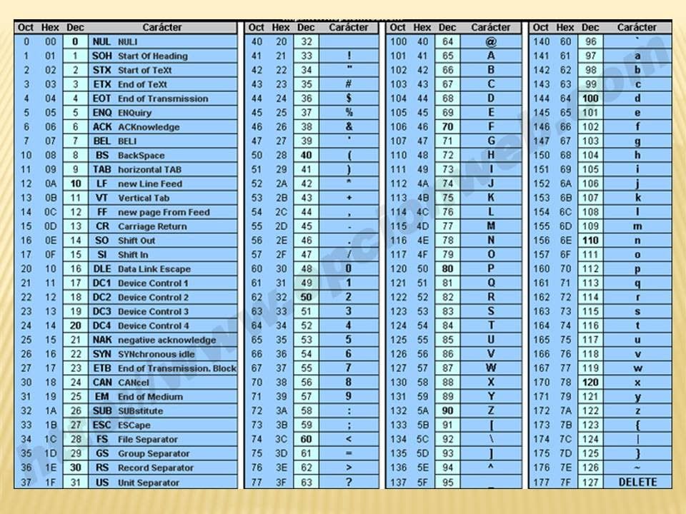 de símbolos (alfanuméricos y otros). el número 32 representa un espacio del
