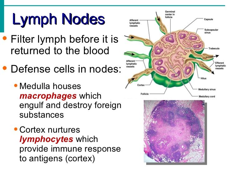 lymph nodes (also known as lymphadenopathy), swelling due to lymph