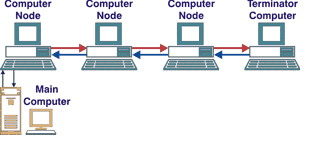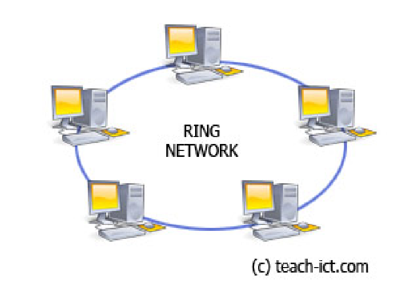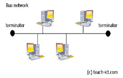 There is a central cable (like a backcone); and the clients are connected to this backbone.