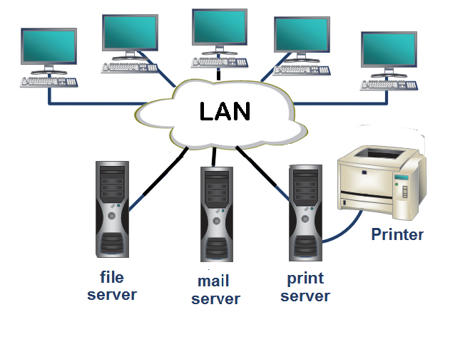 All the clients are connected to a hub (what connects multiple computers or other network devices together).