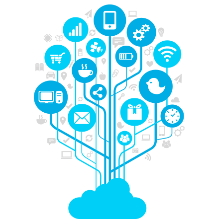 dispositivos de cliente, equipos de red, aplicaciones, contenidos y