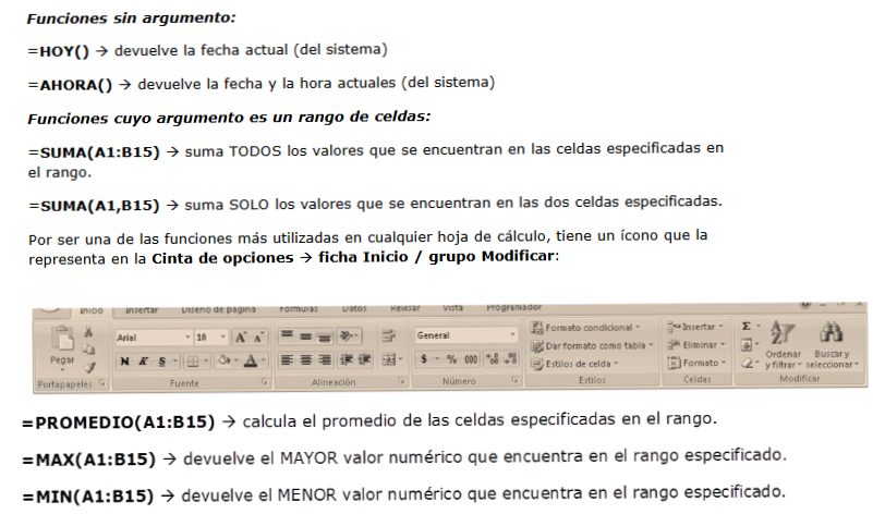 Fecha, matematicas, estadisticas, logicas, financieras, etc.