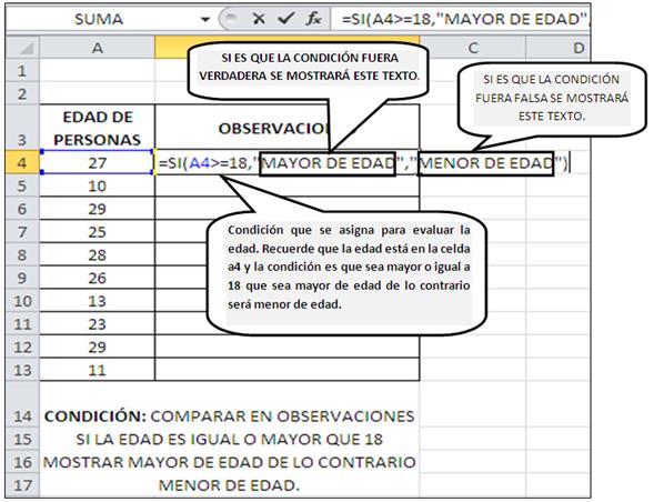 CONDICION: En este caso, A4 seria la primer celda del rango que contiene el valor que necesitamos comparar.