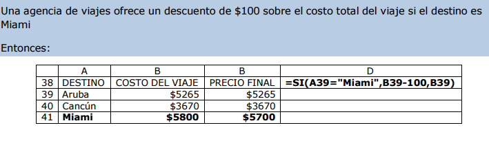 costo del viaje se le restan $100, que es lo que debe hacer si la condición se cumple.