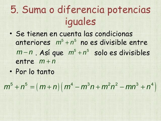 SUMA O DIFERENCIA DE DOS POTENCIAS IGUALES