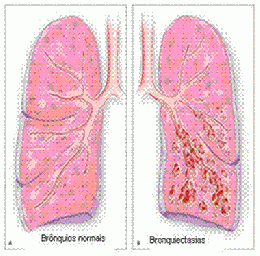la diilatación permanente de los bronquios.
