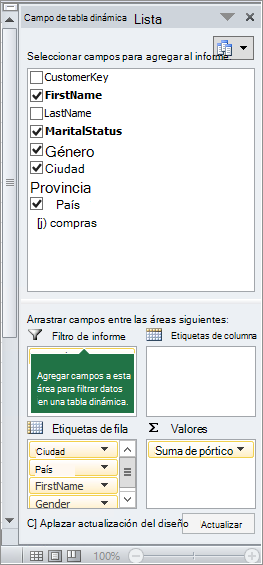 Partes de una tabla dinamica