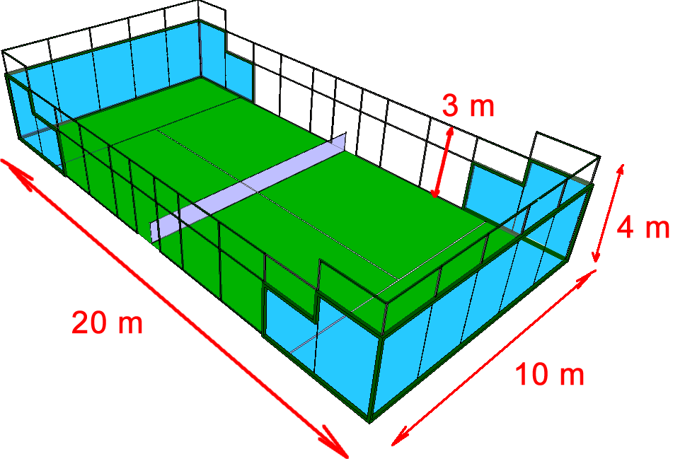 1. TERRAIN: 10 mètres de largueur, 20 mètres de longue et 4 de hauteur.