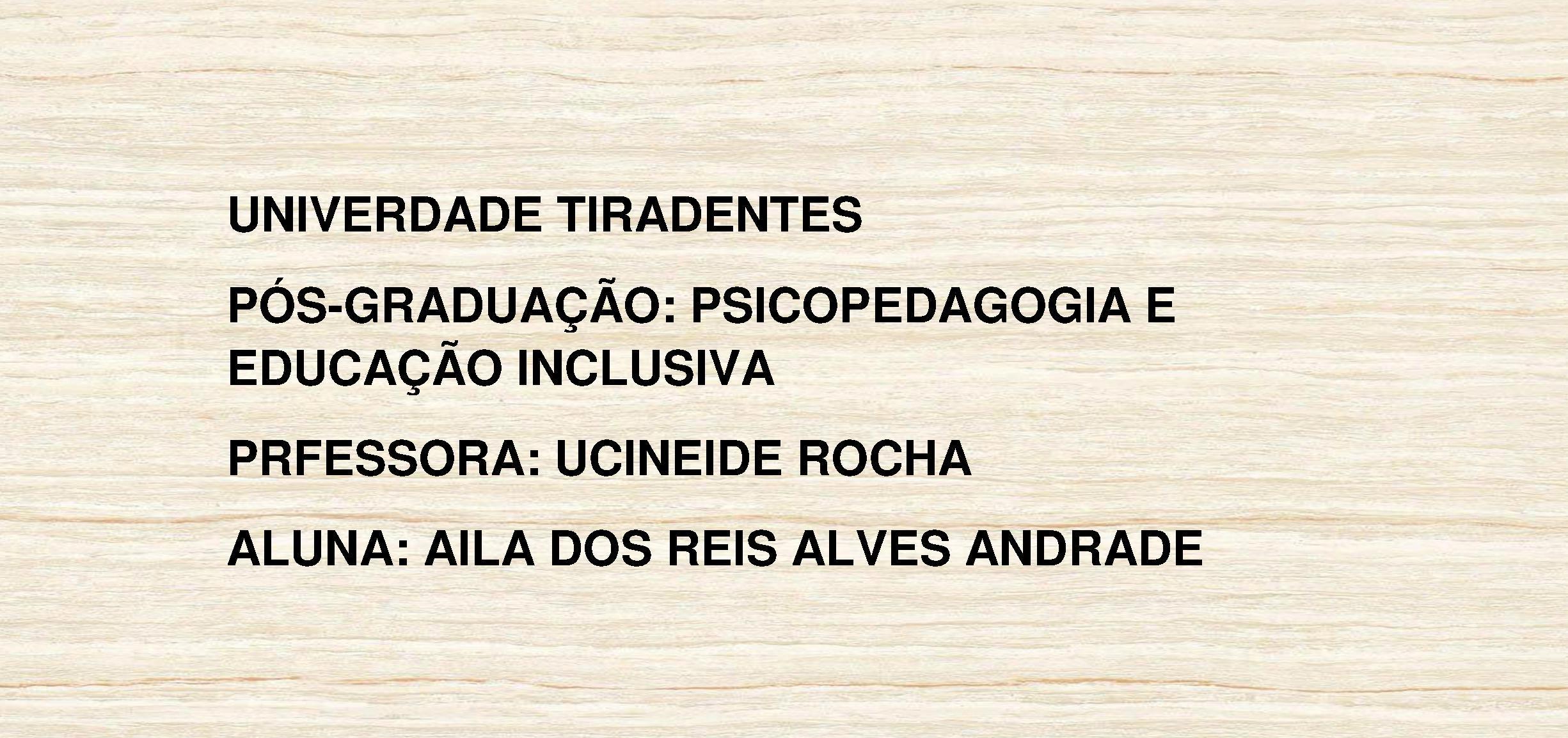 Pós Graduação: Psicopedagogia e Educação Inclusiva Aluna: Aila dos Reis Alves Andrade Professora: Ucineide Rocha