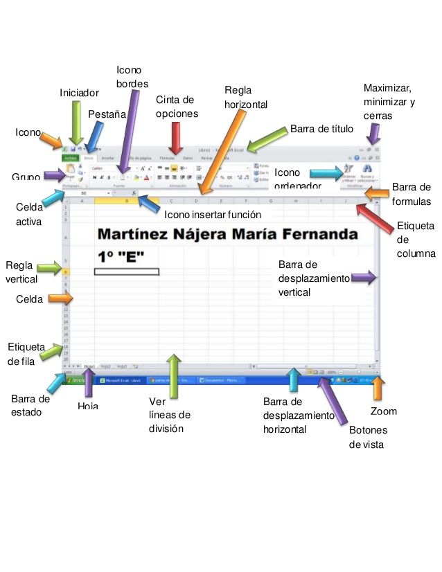 partes de execel barra de titulo hoja de calculo barra de tarea barra de acceso columna y fila