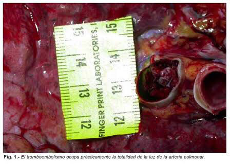 Se puede observar que en la arteria pulmonar un embolo que claramente obstruye la circulación pumonar