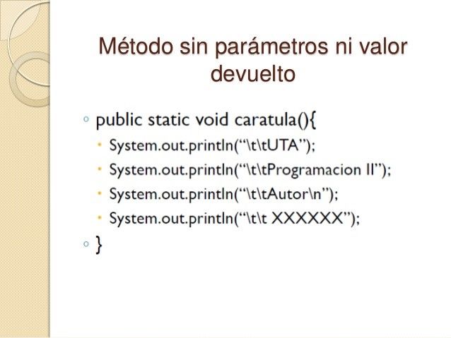 que ha de devolver. El dato se devuelve mediante la instrucción return. Si el método no devuelve ningún valor este