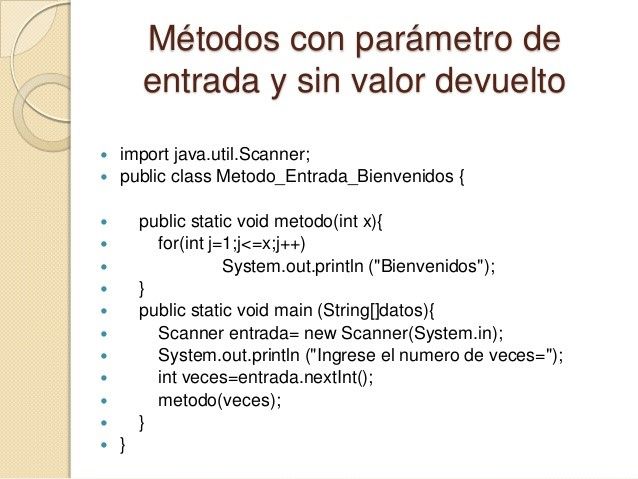 tipo será void. nombreMetodo: es el nombre que se le da al método. Para crearlo hay que seguir las mismas