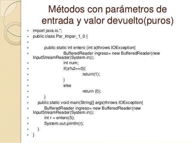 que devuelve el método. En Java es imprescindible que en la declaración de un método, se indique el tipo de dato
