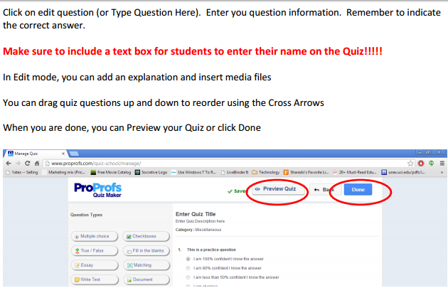 ingresen su nombre en el Quiz !!!!! En el modo Edición, puede agregar