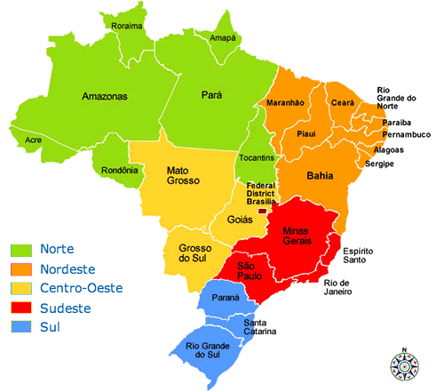 território brasileiro em cinco Grandes Regiões,